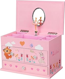 (Pink) - SONGMICS Ballerina Musical Jewellery Box 3 Layers Jewel Storage Box for Girls Animals Pattern Pink UJMC004