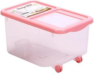 薩牧徳米びつプラスチック防虫防湿蓋付き米びつ大容量米びつ (15kg, ピンク)