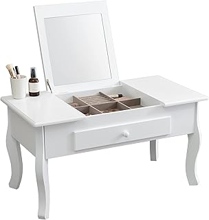 萩原 コスメテーブル ローテーブル 机 猫脚 フェミニン 引き出し付 【ドレッサーとしても使える】 ミラー付き アクセサリー ジュエリー 収納 ホワイト MT-6645WH 幅75cm