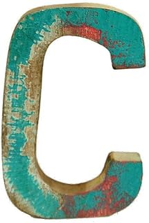 MANJA WOO-0476-C バリ雑貨 木製アルファベットオブジェ 10cm 木製 モンキーポッド 小さい ディスプレイ 文字 天然 アンティーク カラフル ペイント 店舗 (C)