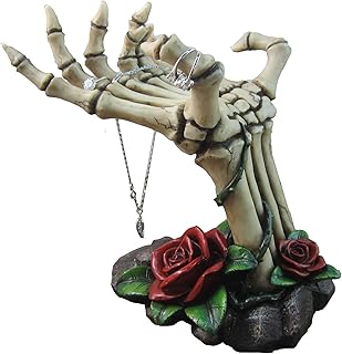 Day of the Deadスケルトン手ローズジュエリースタンドby DWK |ネックレスリングとイヤリングジュエリー表示