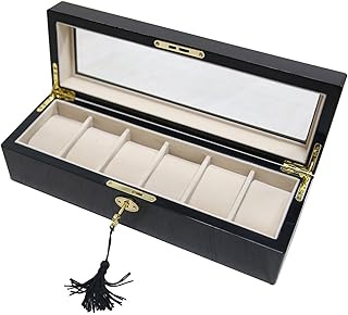 (Ebony Color) - Sodynee 6 Wood Watch Storage Box 03 Display Case Organiser with Lock and Key, Ebony Colour