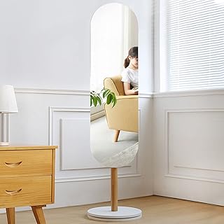 mirahope 全身鏡 姿見 ミラー 付き ハンガー ラック すがた鏡 コート掛け 鏡 全身 玄関 洋服掛け スタンドミラー 鏡 付き ポールハンガー 全身鏡 大きい おしゃれ 収納 回転式 (ナチュラル)