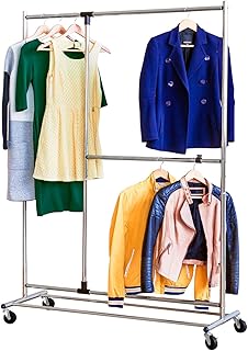 UNHO ハンガーラック 2段 パイプハンガー ダブル 洋服ラック キャスター付 白 大容量 服掛け スタンド おしゃれ パイプハンガー ラック 防サビ加工 棚付き 衣類 収納 室内物干し 幅80x高さ155cm