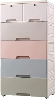 サンパーシー ワイド 収納ケース 6段 収納ボックス タンス チェスト プラスチック 鍵つき 組み立て式 整理 工具不要 (ベージュ) [並行輸入品]