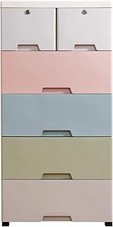 サンパーシー ワイド 収納ケース 5段 収納ボックス タンス チェスト プラスチック 鍵つき 組み立て式 整理 工具不要 (マカロン) [並行輸入品]