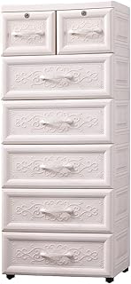雑貨の国のアリス 組み立て式 チェスト 収納ボックス 6段 工具不要 タンス 収納ケース 整理 ワイド 鍵つき プラスチック (ホワイト模様) [並行輸入品]