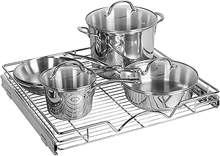引き出しキャビネットオーガナイザー – 高耐久 – スライドアウトキッチンキャビネットストレージシェルフ キャビネット用スライド引き出し – 幅22インチ x 奥行き21インチ – 少なくとも23インチのキャビネット開口部が必要 ワイヤーフレーム クローム仕上げ