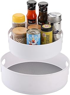 Lazy Susan ターンテーブル オーガナイザー ハードウェア ノンスキッドキャビネット ターンテーブル キッチンオーガナイザー ストレージトレイ スパイス 調味料 スナック用 ホワイト 10インチ 2パック