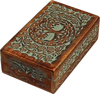 誕生日ギフトアイデア ハンドメイド 装飾木製ジュエリーボックス ツリーオブライフ 彫刻 ジュエリーオーガナイザー 記念品ボックス 宝箱 チェストトリンケットホルダー メモリボックス 腕時計ボックス 9 x 6インチ 記念日のギフト 彼女