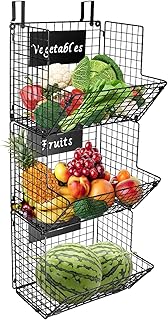 KELIVOL 3段 金属製 壁掛けワイヤー バスケット 吊り下げフックと黒板付き フルーツ、野菜、スナック、製品の保管、整理などキッチンに
