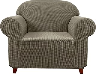 Subrtex 一体型 ソファーカバー 1人掛け 肘付き 無地 伸縮素材 ぴったりフィット式 四季兼用 柔らかい ソファカバー(1人掛け、オリーブグリーン)