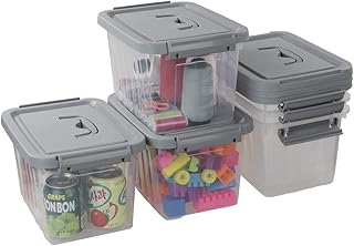 Gloreen 6クォートクリアストレージビン グレーの蓋とハンドル付き 積み重ね可能なプラスチックストレージラッチボックス/コンテナ 6パック