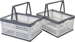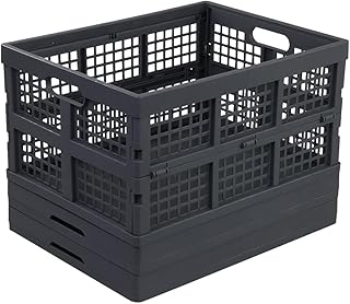 Gloreen 35クォート 折りたたみクレートバスケット グレー 折りたたみ式ストレージ ミルククレート 3パック