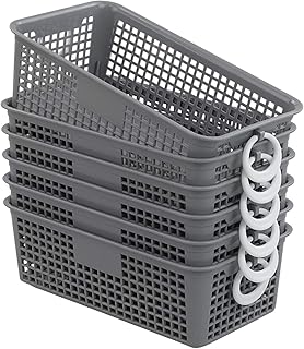 Gloreen デスクトップペーパーストレージバスケット スモールグレー プラスチックメッシュバスケットオーガナイザー 6パック