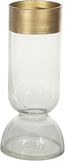 Sagebrook Home 14708-01 グラス 9インチ 花瓶 ゴールド縁付き 3.94 x 3.94 x 9.06インチ クリア/フロスト