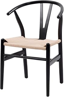 オーエスジェイ(OSJ)ダイニングチェア 編藤椅子 叉骨背もたれ ブラック ソリッドウッド 天然木 北欧 無垢材 家庭用椅子 PP197894BAA