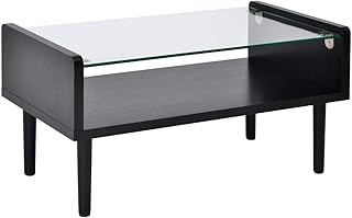 オーエスジェイ(OSJ) ローテーブル ディスプレイ 強化ガラス 北欧スタイル ブラック 80X43X40cm