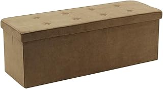 収納スツール オットマン 折りたたみ式 耐荷重200kg 三人掛け 収納ベンチ 合皮 PUレザー 収納ボックス ストレージチェア スペース活用 158L 収納 6cmクッションベンチ (茶色PU(NEW), 110*38*38cm)
