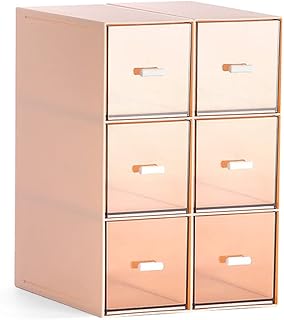 収納ケース 引き出し 小物収納 卓上収納ラック 卓上小物収納ボックス 組み合わせて使える 文房具 化粧品 事務用品 防塵 (二個セット-ピンク)