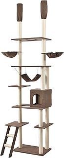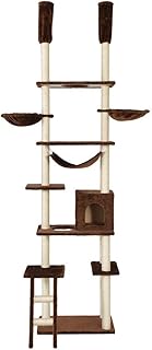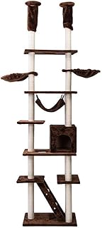 キャットタワー 突っ張り 最高263cm 全面麻紐 キャットタワー 爪研ぎ つっぱり 階段 多頭飼う キャットハウス 猫ベッド 隠れ家 おもちゃ (233~263CM, ブラウン)