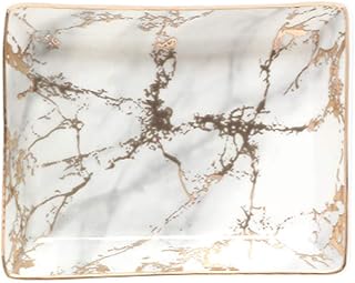 SOCOSY 大理石セラミックリング ディッシュジュエリー ディッシュリングホルダー ジュエリーオーガナイザー ゴールデンエッジ ホーム装飾 ウェディングギフト(ゴールデン、ミディアム)