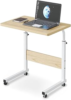 HANYEEサイドテーブル キャスター付き 高さ調節 コの字 昇降式テーブル パソコンデスク 勉強机 仕事デスク 介護用テーブル ベッドサイドテーブル ソファーサイドテーブル 幅60cm×奥行40cm×高さ70~90cm 組立簡単 日本語説明書付き(ナチュラル)